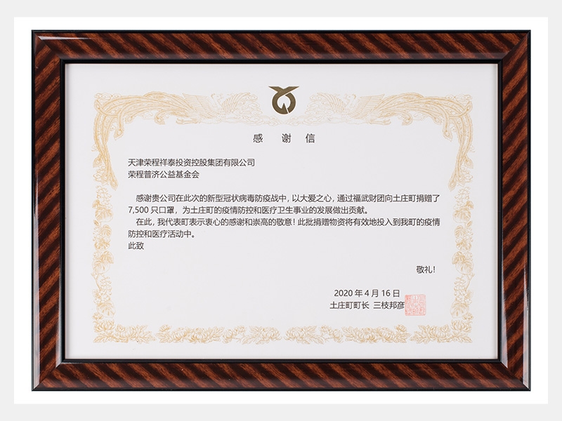 “人道、博爱、奉献”红十字精神-防疫物资捐赠感谢证书