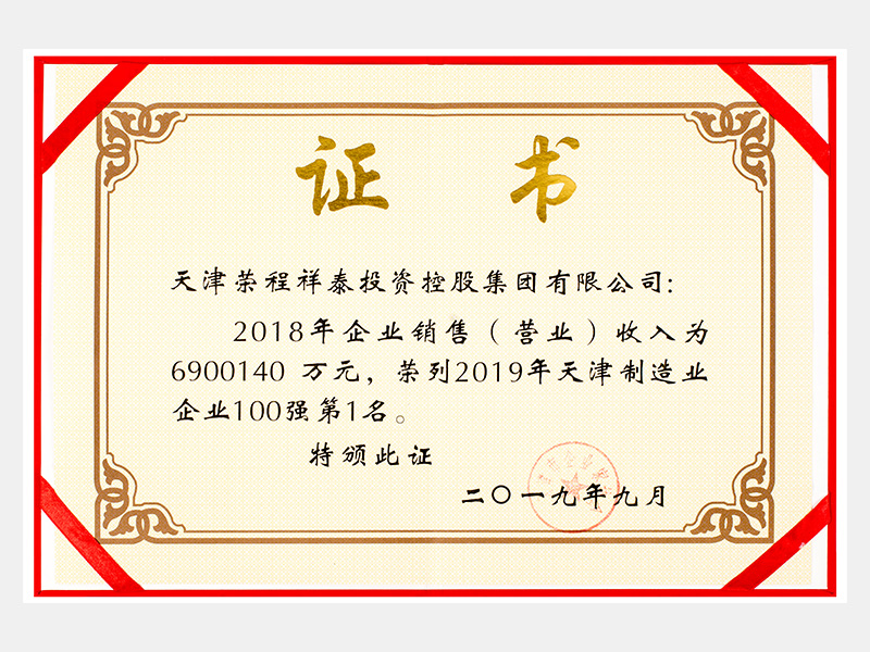 2018年企业销售(营业)收入为6900140万元,荣列2019年天津制造业企业100强第1名。