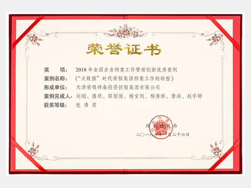 2018年全国企业档案工作管理创新优秀案例优秀奖