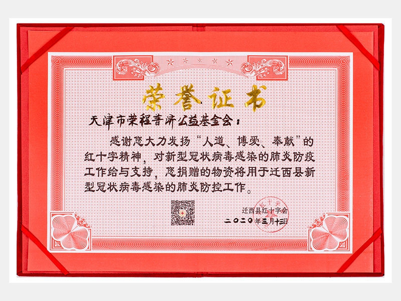 “人道、博爱、奉献”红十字精神-防疫物资捐赠感谢证书