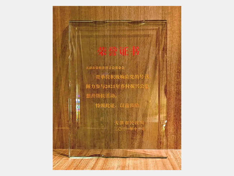 “倾力参与2021乡村振兴公益慈善帮扶活动”荣誉证书